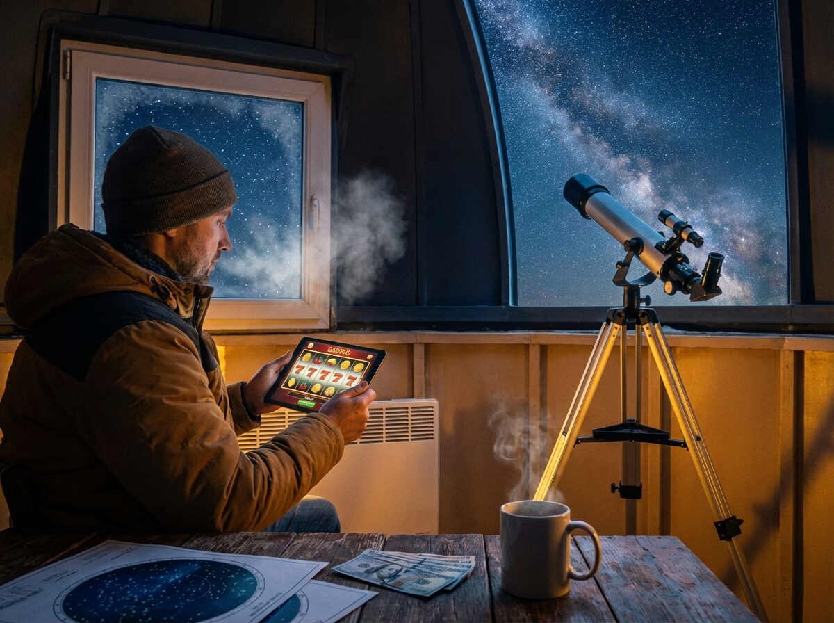Я — Дмитрий, мне тридцать семь лет, и я астроном-любитель в обсерватории на холме за городом, где воздух чистый, как утренняя роса, а небо — самое настоящее: без смога, без огней, только звёзды и тишина. Сейчас середина зимы, мороз щиплет за щеки, телескоп стоит на штативе, окуляр ещё хранит тепло рук, а я сижу в маленькой будке с обогревателем, грею пальцы о кружку с чаем и открываю на планшете казино. В такие ночи, когда Вселенная показывает своё величие, хочется добавить в жизнь немного земного азарта — вращения барабанов вместо вращения галактик.