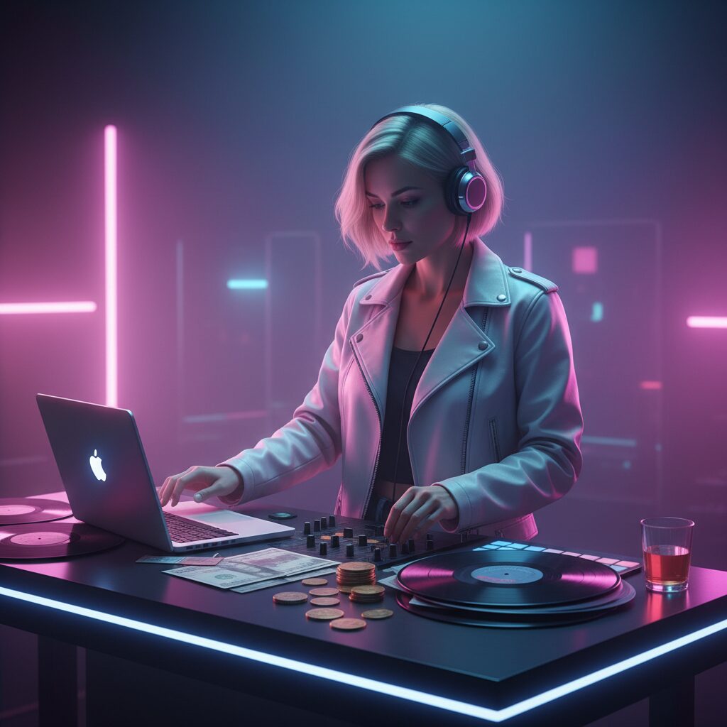 Утром я сплю, как город после ливня — ни снов, ни новостей. К полудню поднимаюсь, захожу в пустое кафе, где пахнет вчерашним кофе и новой партией винила. Проверяю аппаратуру, настраиваю свет, чистлю проигрыватель — без этого музыка звучит иначе, как будто с усталостью. К вечеру загорается вывеска, народ подходит ближе к девяти, и начинается мой ритм: электронные биты, танцы, смех, хлопки, море лиц, которых я почти не запоминаю.