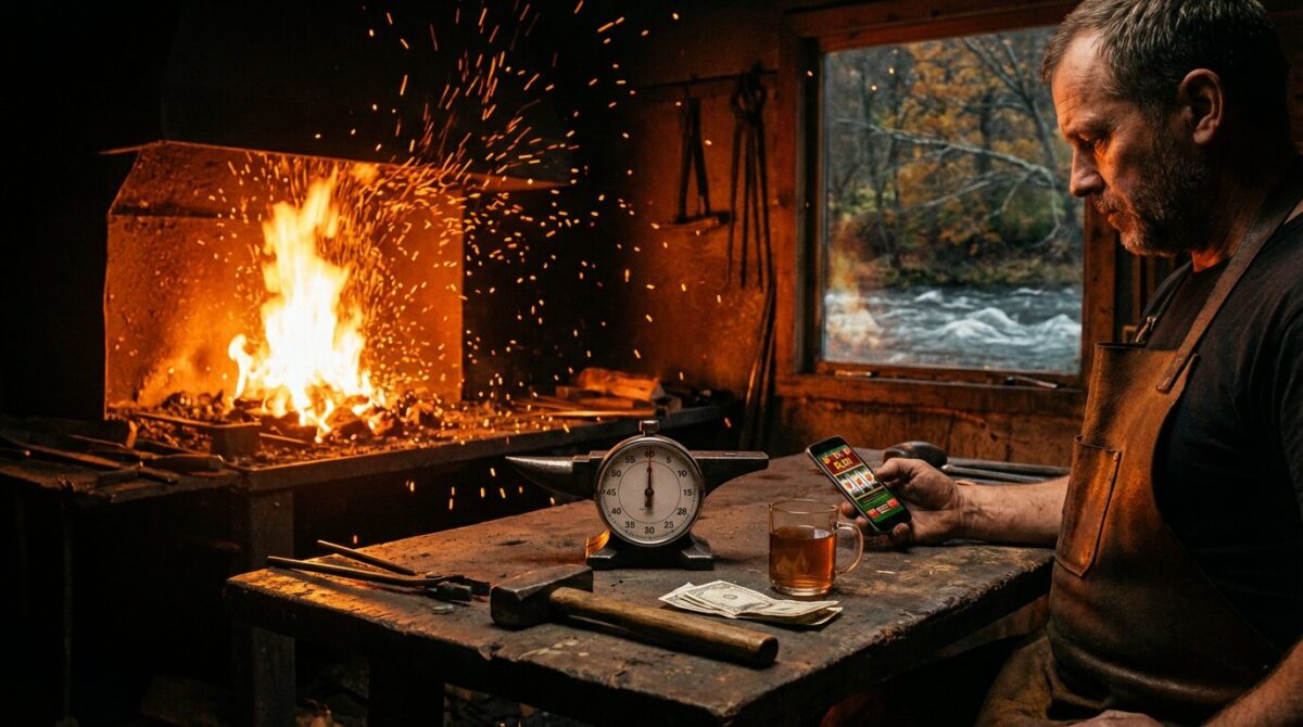Я — Михаил, мне пятьдесят два года, и я кузнец в маленькой мастерской у реки, где горн пылает красным, молот бьёт ритмично, а воздух густой от угля, железа и пота. Сейчас глубокая ночь, деревня спит, только мой горн освещает мастерскую оранжевым светом, искры летят под потолок. Заказы выполнены, и я сижу у наковальни с кружкой травяного чая, открываю телефон и захожу в Вулкан казино — добавляю огня в ночную тишину.